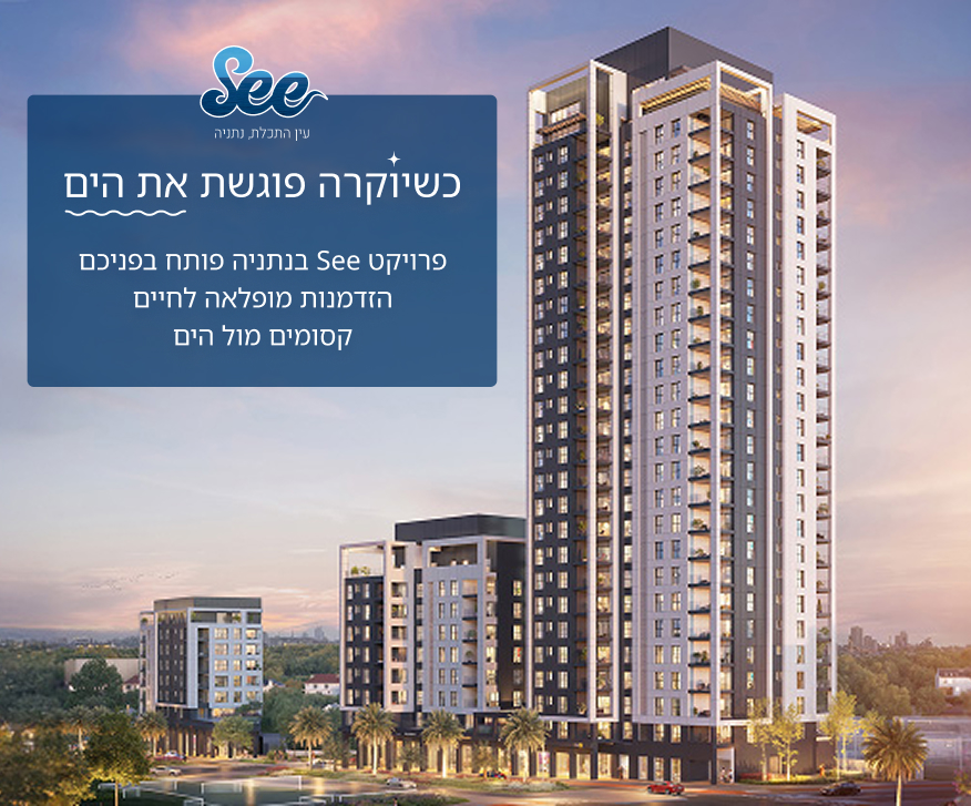 אתם מוזמנים להתחיל את החיים החדשים שלכם בפרויקט"See", ריזורט יוקרה צמוד לים בו כל יום ירגיש לכם כמו חופשה. "See" הינו פרויקט מגורים חדש בשכונת "עין התכלת", בצפון היוקרתי של נתניה, המזמין אתכם לחוות חיים חדשים של שלווה ויופי, בין נופי הים התיכון ושדות המושבים של השרון.